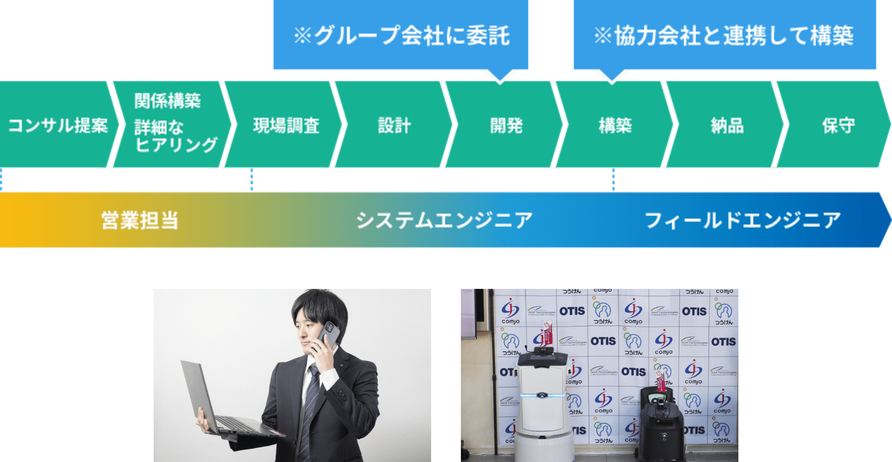 エンジニアがシステムの構築を行います。